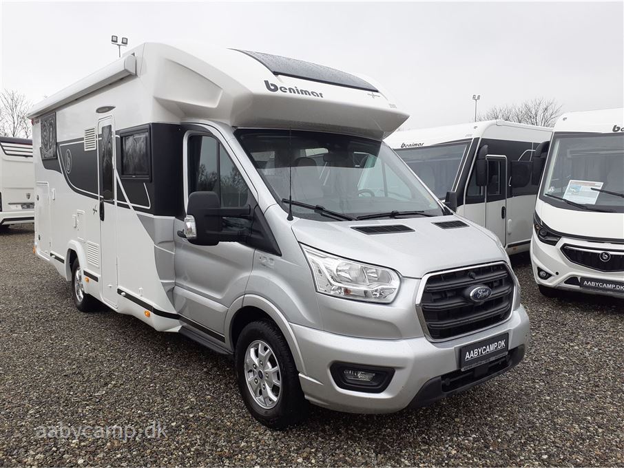 Denne autocamper er den populære Benimar. 468 modellen er indrettet med Face to Face siddegruppe (det giver god gulvplads), der er hæve/sænke seng over siddegruppen. Der er køkken med tre gasblus og stort køleskab.